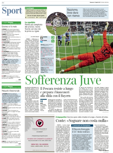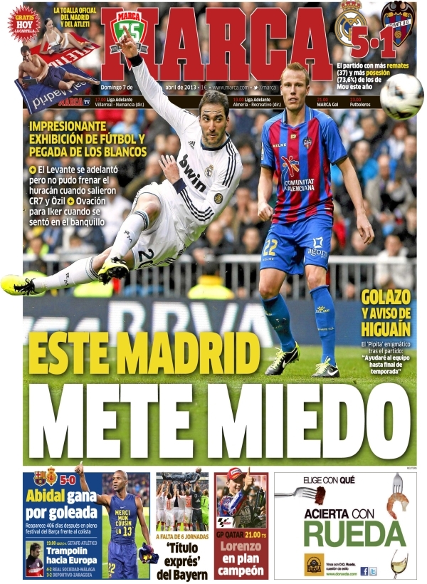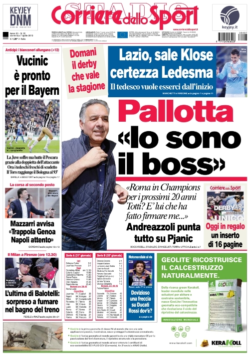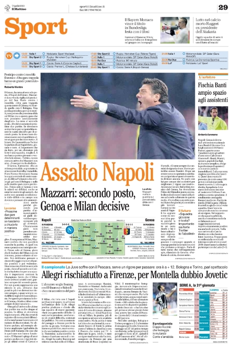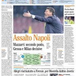 Per il resto oggi si parla dell’ennesima balotellata, è stato beccato a fumare nei bagni del treno ed è stato multato da Galliani (chissà che lo stesso è stato fatto dal capotreno), mentre all’estero ci sono Real e Barça che continuano a schiacciare le avversarie con 5 gol per volta, mentre il Bayern Monaco, in attesa di incontrare la Juve, festeggia la conquista dello scudetto con 6 giornate d’anticipo. Ma trovate tutto nelle aperture di oggi.