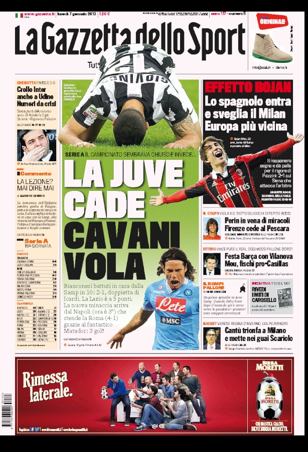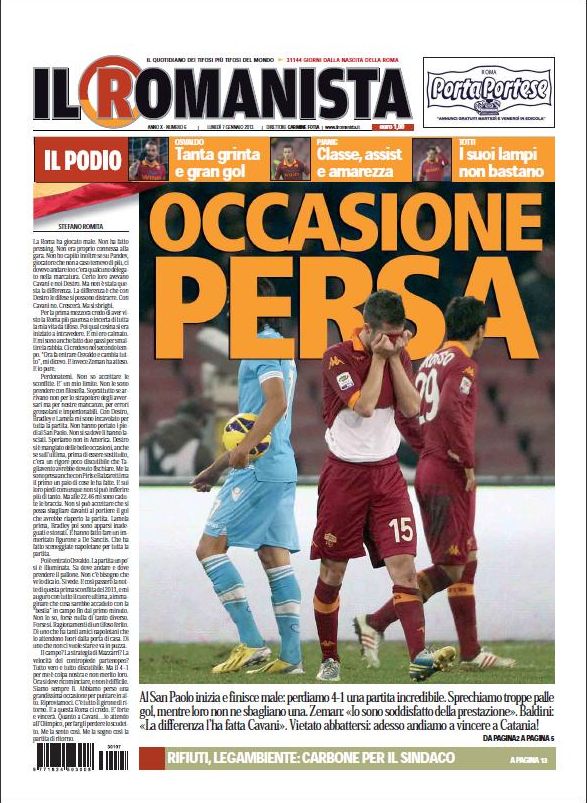 E’ certamente questa la notizia del giorno, insieme al mostruoso Cavani che ormai ci ha abituati a partite del genere. Tre gol contro la Roma e prima pagina meritata su quasi tutti i giornali. L’unico a non esaltarlo è ovviamente il Romanista che però fa i complimenti ugualmente alla propria squadra perché, nonostante i quattro gol subiti, non ha giocato così male come dice il risultato. A voi le prime pagine dei giornali di oggi.