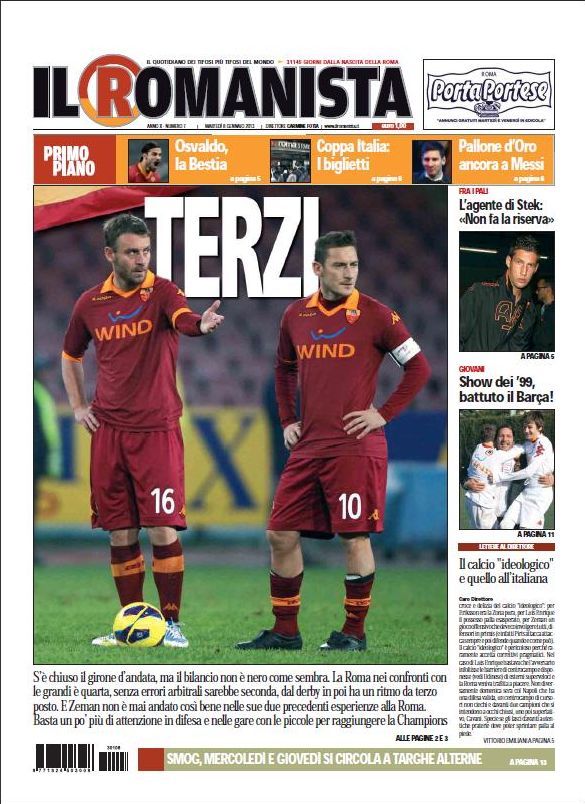 La nostra parentesi sul Romanista oggi è molto interessante. Il titolo è enigmatico, “Terzi”, ed è il risultato di alcuni strani calcoli, tra cui anche quello della classifica senza errori arbitrali che vedrebbe i giallorossi secondi. Sarà così? Ve lo sveleremo nel corso della giornata, per adesso godiamoci le prime pagine dei quotidiani sportivi di oggi.