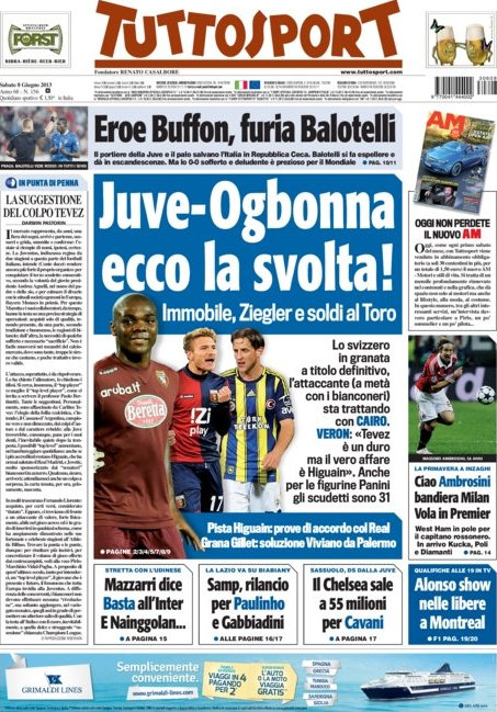 Ormai siamo sempre più abituati a parlare degli stessi argomenti il giorno dopo la partita con la nazionale: Buffon che ci salva e Balotelli che ne combina una delle sue. A volte le “Balotellate” sono positive, come i grandi gol a cui ci ha abituato, altre invece sono negative, come l’espulsione con tanto di sfogo in cui ha cercato di distruggere lo stadio. Le aperture di oggi dei giornali sportivi non potevano che essere dedicate a questo.