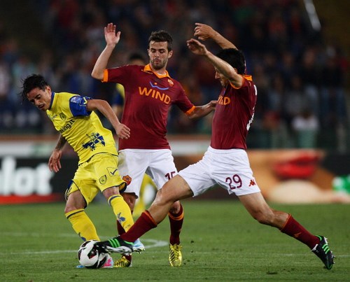 È giusto dire insomma che la squadra di Andreazzoli ha buttato via un’occasione preziosa, considerato anche che il Chievo non aveva affatto convito nelle ultime uscite. E invece la squadra di Corini si presenta all’Olimpico perfettamente ordinata e brava a chiudere tutti gli spazi: un sistema di gioco già messo in evidenza nel primo tempo. Solo una vera occasione per i giallorossi intorno al 35′ con Osvaldo, ma niente di più. Il Chievo abbassa i ritmi e la Roma non accelera per cambiare le cose.