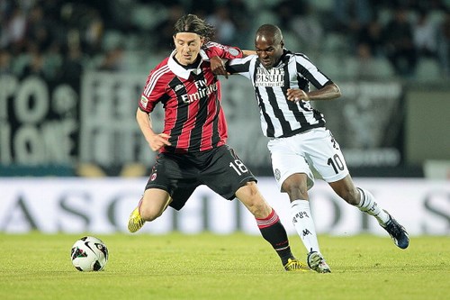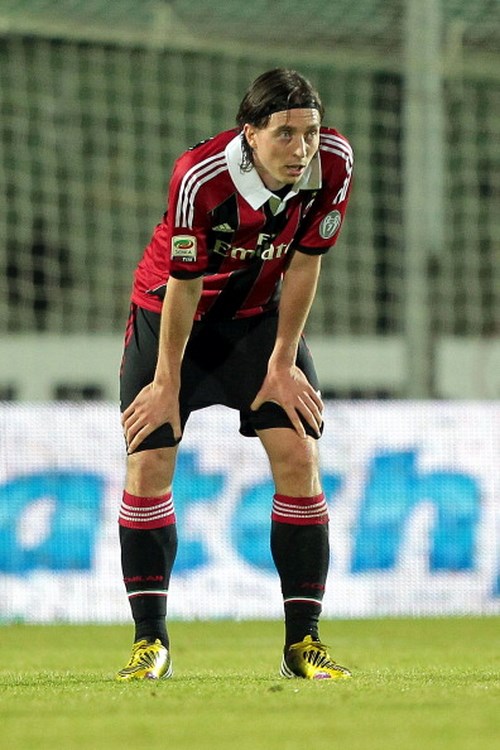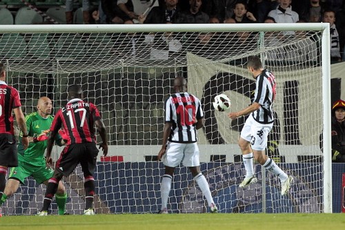 Il Milan aveva approcciato subito la gara con il chiaro intento di segnare il gol della sicurezza. A sorpresa arriva invece il vantaggio senese con Terzi, bravo a segnare tutto solo su cross di Rosina. La reazione rossonera è veemente e si sintetizza con una traversa colpita da Balotelli. All’intervallo è però 1-0.