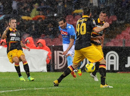 Sei gol al San Paolo di Napoli, dove i padroni di casa ospitavano il Lecce ultimo in classifica. Gli azzurri stavolta non falliscono l’appuntamento con la vittoria, dopo i pareggi con Juventus, Atalanta e Lazio, e si impongono con un secco 4-2. Tre i gol nella prima frazione di gioco, quando i partenopei mettevano al sicuro il risultato grazie a Lavezzi, Cavani e Dzemaili.