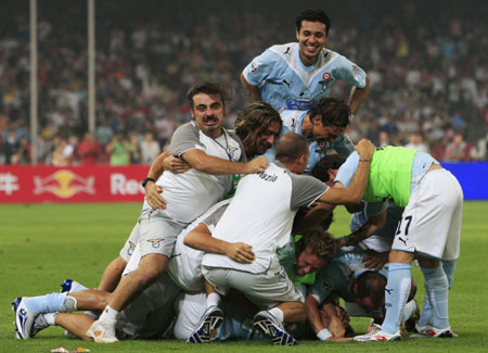 La Lazio si gode il primo trofeo stagionale, nonostante il pronostico sfavorevole, nonostante i grandi acquisti portati a termine dall’armata nerazzurra, nonostante il possesso palla nettamente a favore dell’Inter per tutto il corso della gara. Ma nel calcio vince chi la butta dentro ed in questo i biancazzurri sono stati perfetti, capitalizzando al meglio le occasioni procuratesi dalle parti di Julio Cesar. La stampa italiana ha commentato “l’Inter gioca, la Lazio vince”, ma sfidiamo chiunque tra un anno o due a ricordarsi dei colpi di testa di Lucio o dell’occasionissima di Eto’o davanti a Muslera, che ha creato non pochi brividi sulle schiene dei laziali.