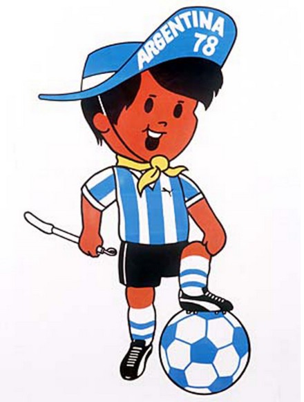 Ancora figure umane a rappresentare il mondiale di Germania nel 1974 con due ragazzini (Tip e Tap) che indossano maglie bianche con le scritte WM (Weltmeisterschaft, Campionato del mondo in tedesco) e ’74. L’Argentina nel ’78 scelse Gauchito, un ragazzo vestito con la casacca della biancoceleste e con un cappellino riportante il nome del paese ospitante e l’anno della manifestazione.