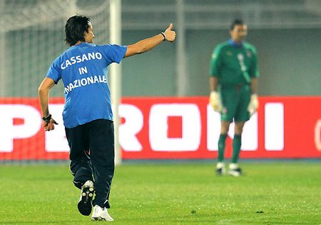 L’amichevole Italia-Olanda non ha regalato grosse emozioni dal punto di vista del gioco, ma il pubblico di Pescara ha avuto ugualmente l’occasione di divertirsi, specie al quinto minuto del primo tempo, quando un invasore solitario ha percorso metà del terreno di gioco per presentare la propria richiesta a mister Lippi. Quale? Ma naturalmente un bel “Cassano in Nazionale” stampato sulla maglia azzurra, proprio sotto la S di Superman.