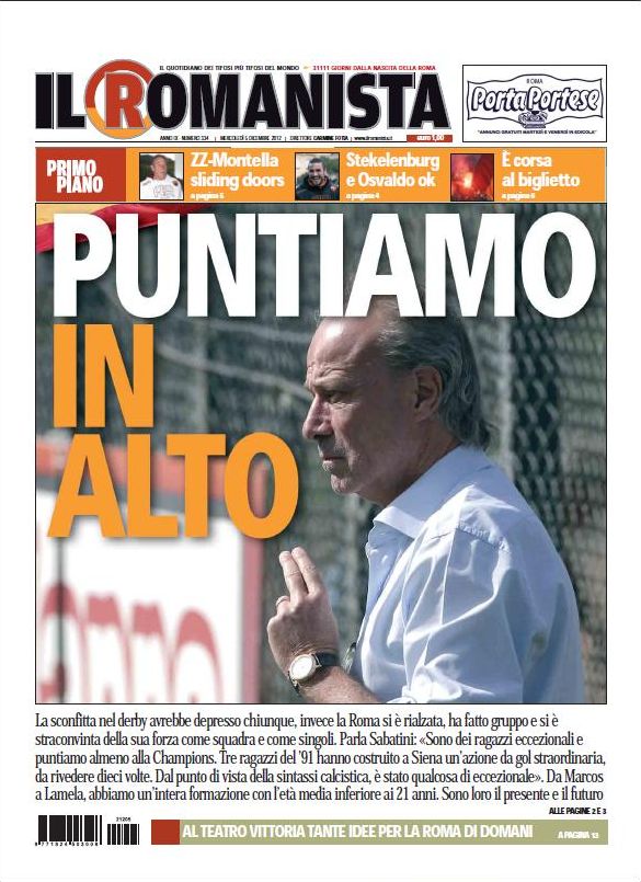 Per il resto i giornali sportivi italiani sono concentrati sul calciomercato, ed in particolare sull’apertura di Berlusconi a Balotelli, il solito nervosismo in casa Inter (oggi Moratti litiga anche con Lotito), ed il Napoli che tenta di difendere Cavani dagli assalti esterni. Chiudiamo con il Romanista che ora sente che qualcosa può cambiare dopo la vittoria di Siena e chiede alla squadra di puntare in alto. Certamente la sfida contro la Fiorentina sarà cruciale nel cammino della Roma. A voi le prime pagine dei quotidiani di oggi.