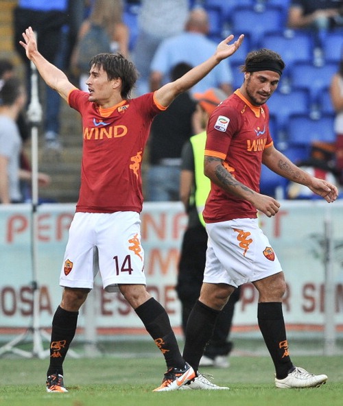 Ma la Roma cominciava la gara con il piede giusto, decisa più che mai a regalare la prima vittoria interna ai suoi tifosi. Correva il minuto numero 20, quando De Rossi serviva a Bojan l’assist del vantaggio, che significava per lo spagnolo la prima rete con la maglia giallorossa. Gli ospiti tentavano una reazione, ma era ancora la Roma a colpire al minuto numero 31, quando Osvaldo siglava la sua terza rete da romanista e regalava ai padroni di casa la prospettiva di un secondo tempo un po’ più tranquillo.
