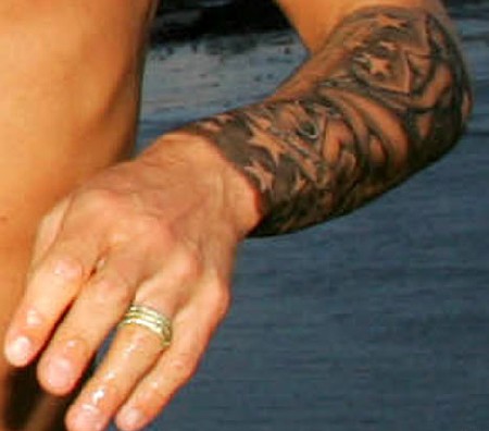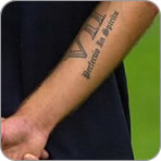 Sull’altro lato dell’avambraccio compare un tatuaggio tratto dal film Prison Break, un arzigogolo poco chiaro che probabilmente avrà come unico significato quello di voler evadere dalla prigione dorata della sua notorietà che delle volte dà decisamente alla testa.