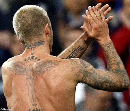 “I miei tatuaggi – spiega il calciatore – rappresentano quello che è importante per me nella vita. Ci sono i miei figli e mia moglie, che voglio avere sempre con me. Sono un’espressione di quello che provo per Victoria e per i ragazzi. Loro sono parte di me”. Una parte di sè che vuol portare tatuata a vita sulla pelle. Speriamo che non ci siano altri ricordi, altrimenti non avrà più spazio per tatuarli.