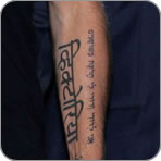 Sull’avambraccio sinistro invece compare una scritta biblica con caratteri hindi. La stessa frase compare sul collo di sua moglie, ed è beneaugurante. E’ stato il loro “regalo” per il sesto anniversario di nozze, e questa idea è venuta a lui perchè ha origini ebraiche.
