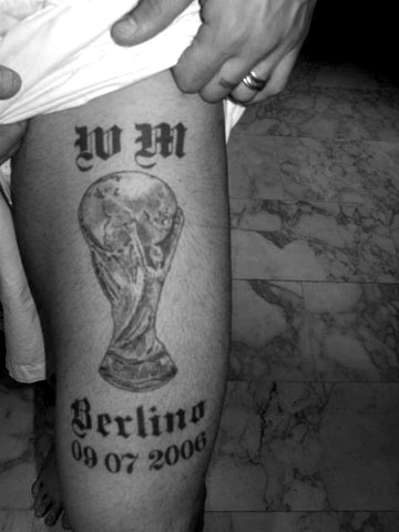 Il più bello, e qui c’è un po di orgoglio nazionalista, è quello sulla coscia sinistra: la Coppa del Mondo, con la scritta Berlino e la data della finale, giusto per non dimenticarsela. Non è un caso che si sia fatto questo tatuaggio proprio sulla gamba sinistra. Infatti è quella con cui ha calciato il rigore nella finale. A questo è accompagnato il doppio tatuaggio delle stelle su entrambe le spalle, al cui interno ci sono 20 e 06, a rimarcare l’anno di vittoria del mondiale.