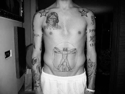 Mentre sull’altro braccio ci sono un vichingo e una fascia indiana. In tutto questo Materazzi si permette anche di fare il filosofo, facendosi tatuare su entrambe le braccia la frase “Se un problema non si può risolvere, a che serve preoccuparsi?”. Bè, ognuno si sceglie la sua filosofia di vita.